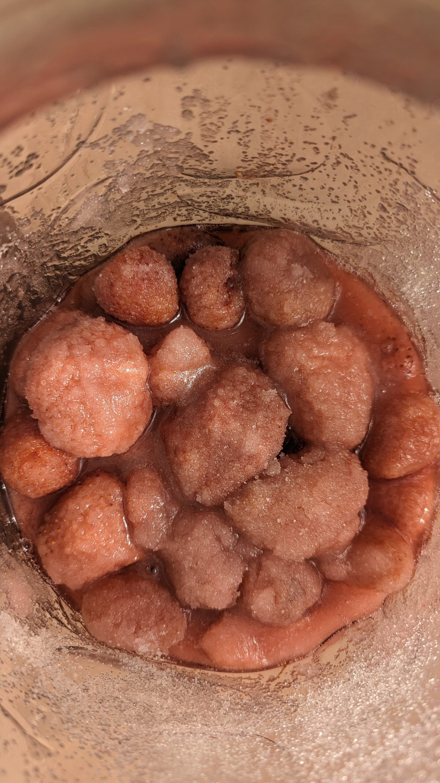 Nalewkę zlewamy do innego naczynia i pozostawiamy same truskawki w słoiku. Truskawki zasypujemy przygotowanym wcześniej cukrem. Pozostawiamy na parę w moim przypadku 4 dni, aż cukier wykona swoja pracę i wyciągnie sok z owoców.