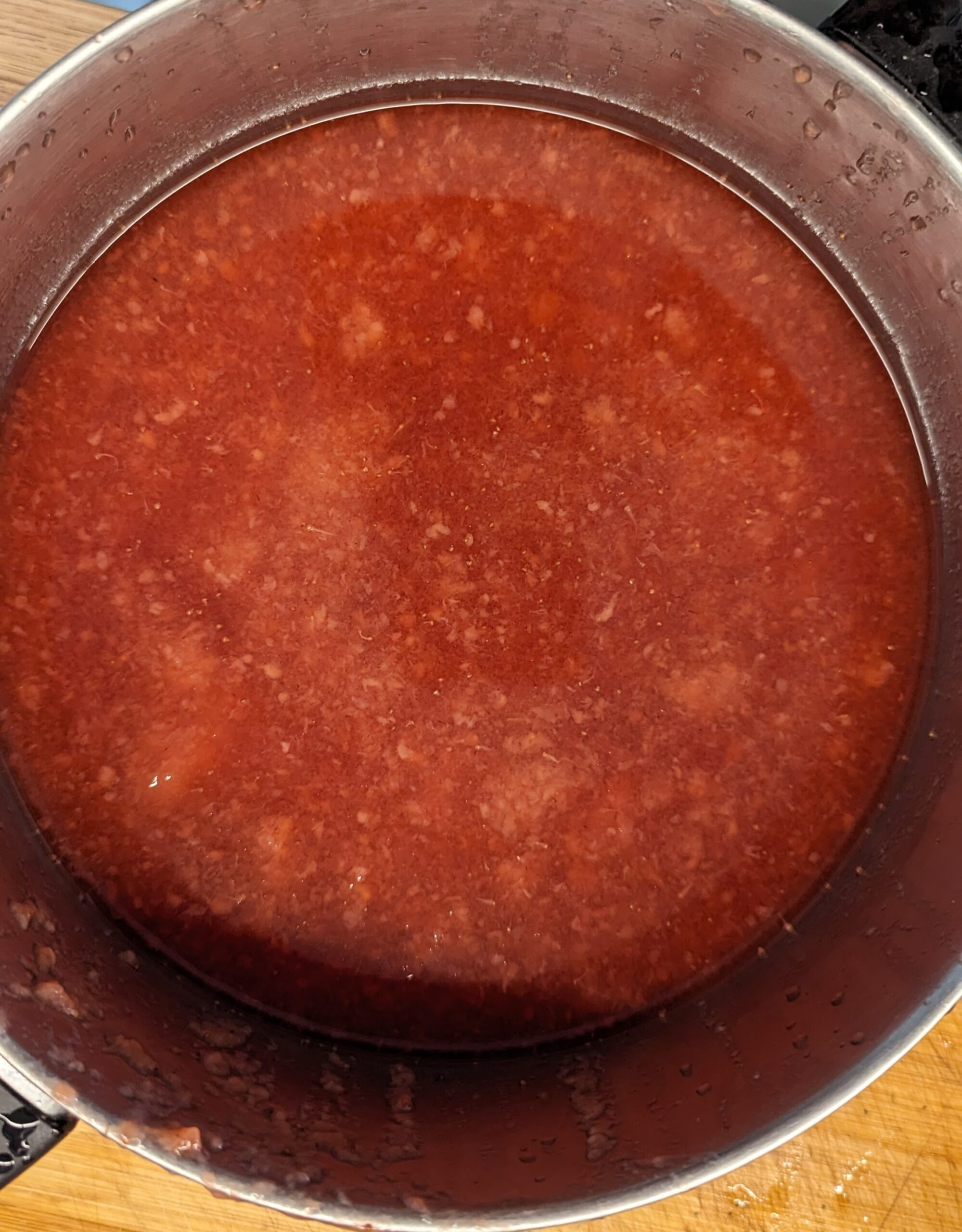 Zlewamy wyciągnięty sok z truskawek i dodatkowo przeciskam jeszcze owoce przez prasę, aby wyciągnąć resztki soku z truskawek. Nalewkę filtruję przez sitko z miare dużymi oczkami, ponieważ lubię jak w nalewce są malutkie elementy owoców.