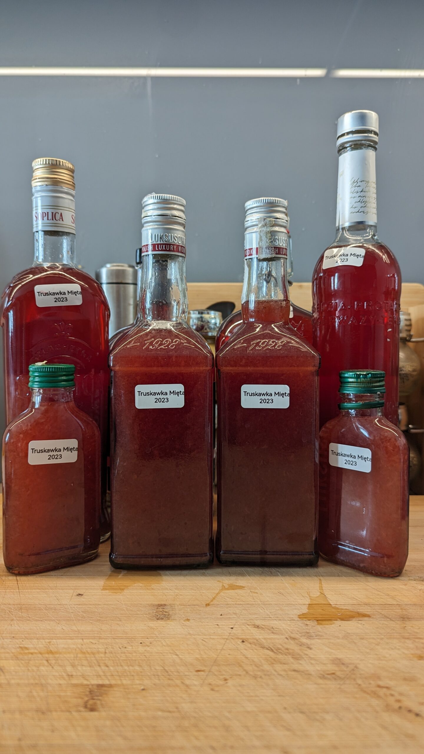 Zalewamy truskawki z miętą na samym początku przygotowaną wódka, a następnie wlewamy spirytus. Kolejność jest tutaj istotną, ponieważ spirytus może “sparzyć” owoce, co może się przełożyć niekorzystnie na smak naszej nalewki.